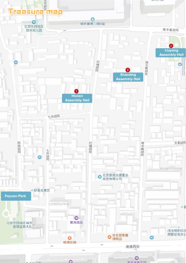 The Fayuan Community is a historical community consisting of several Hutongs and assembly halls. The most representative assembly halls are Shaoxing Assembly Hall, Liuyang Assembly Hall, and Hunan Assembly Hall.